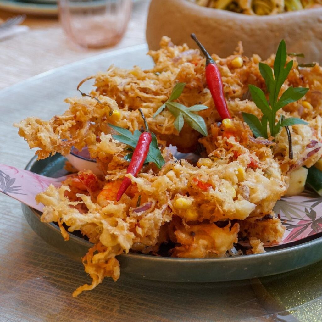 • Pomelo Salad with Crispy Prawn Cheeks — Fresh, tangy, and crunchy.