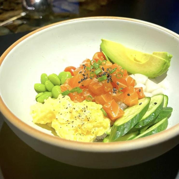 A: While the menu leans toward protein-heavy dishes, poke bowls and some small plates are lighter and veg-friendly.