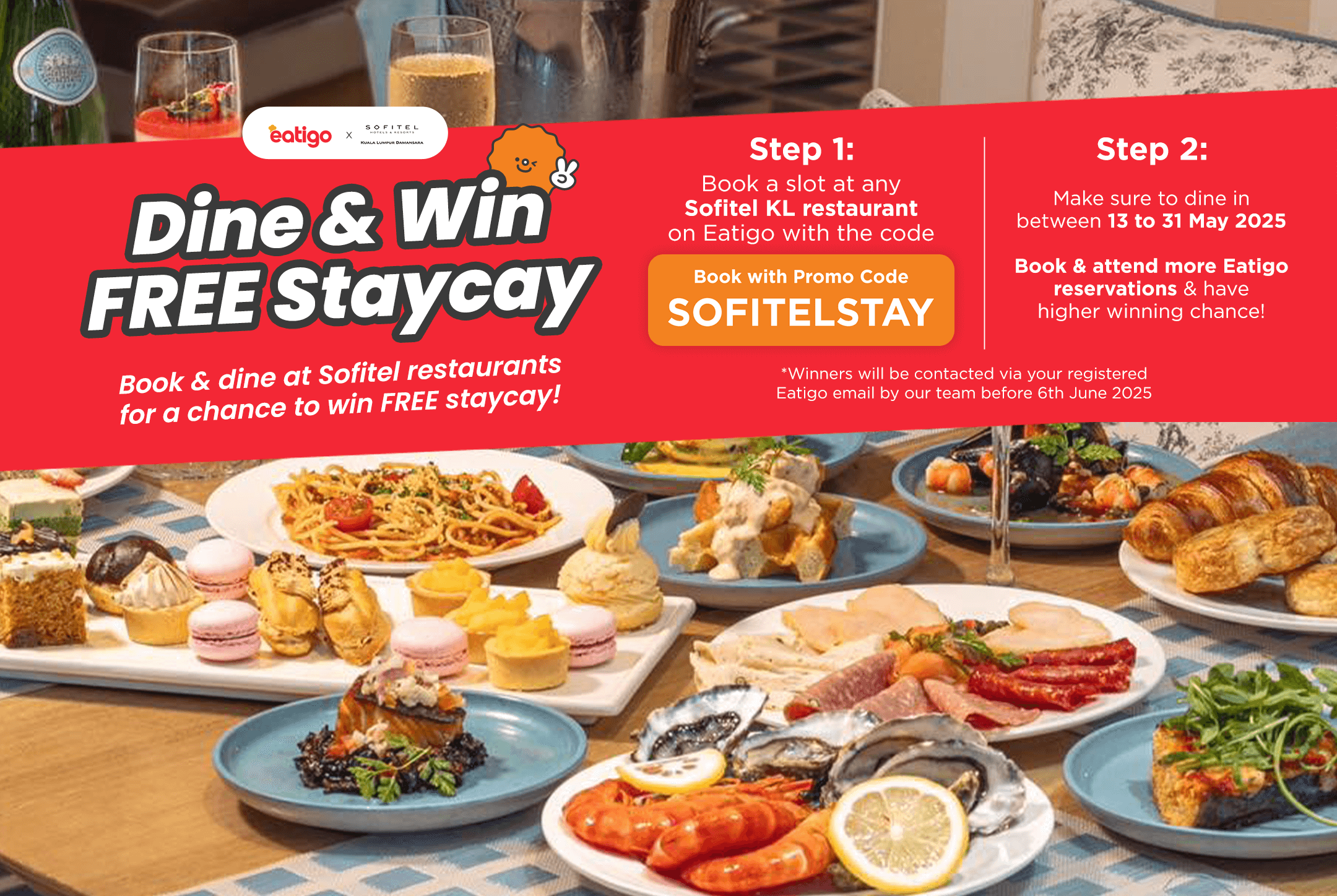 - 3 winners will be selected randomly as determined by Eatigo Malaysia, with priority given to participants with higher number of reservations made and attended with code [SOFITELSTAY]