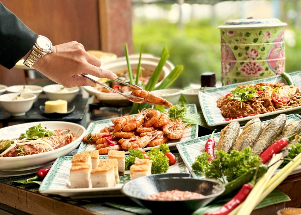 Here, every dish is prepared with recipes that highlight the unique heritage of the Straits Chinese community—rich curries, slow-braised meats, and labor-intensive dishes like buah keluak that few restaurants attempt to serve in a buffet format.