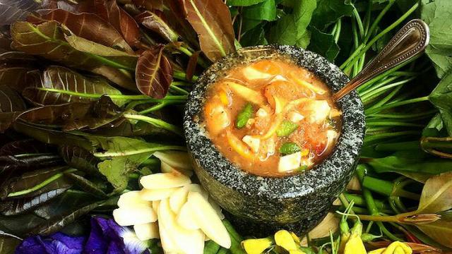 Proudly presenting traditional Southern Thai dishes from Phang Nga. Main ingredients like shrimp paste and curry pastes are sent from the South, while some indigenous vegetables are grown in their own garden in Bangkok.