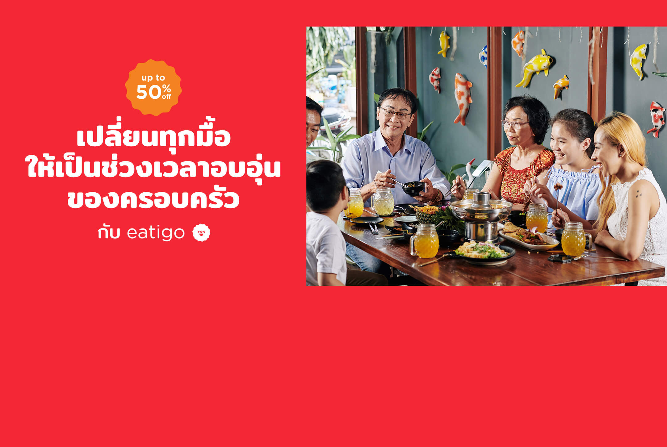 มื้ออาหารกับครอบครัวไม่ใช่แค่การกิน แต่เป็นโอกาสในการเชื่อมความสัมพันธ์ สร้างความทรงจำ และใช้เวลาคุณภาพร่วมกัน Eatigo พร้อมช่วยให้ทุกมื้อของครอบครัวคุณพิเศษขึ้น ทั้งคุ้มค่าและไร้กังวล