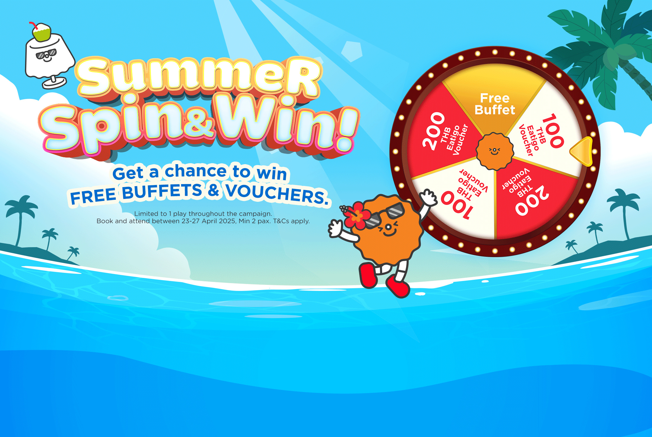 1️⃣ Open the Eatigo app – the Summer Spin Wheel will pop up for you to play 🌞🎡