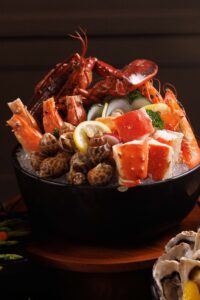 เมนูของที่นี่ครอบคลุมทั้งอาหารไทยและเอเชียยอดนิยม ไม่ว่าจะเป็นอาหารจีน อาหารญี่ปุ่น อาหารเมดิเตอร์เรเนียน ไปจนถึงเมนูตะวันตกสุดหรู โดยราคาบุฟเฟ่ต์จะต่างกันตามมื้อที่เลือก ไฮไลต์ที่พลาดไม่ได้คือ ซีฟู้ดบุฟเฟ่ต์สุดอลังการ ที่การันตีความสดใหม่ทุกวัน และเป็นที่ชื่นชอบของลูกค้าประจำมากมาย